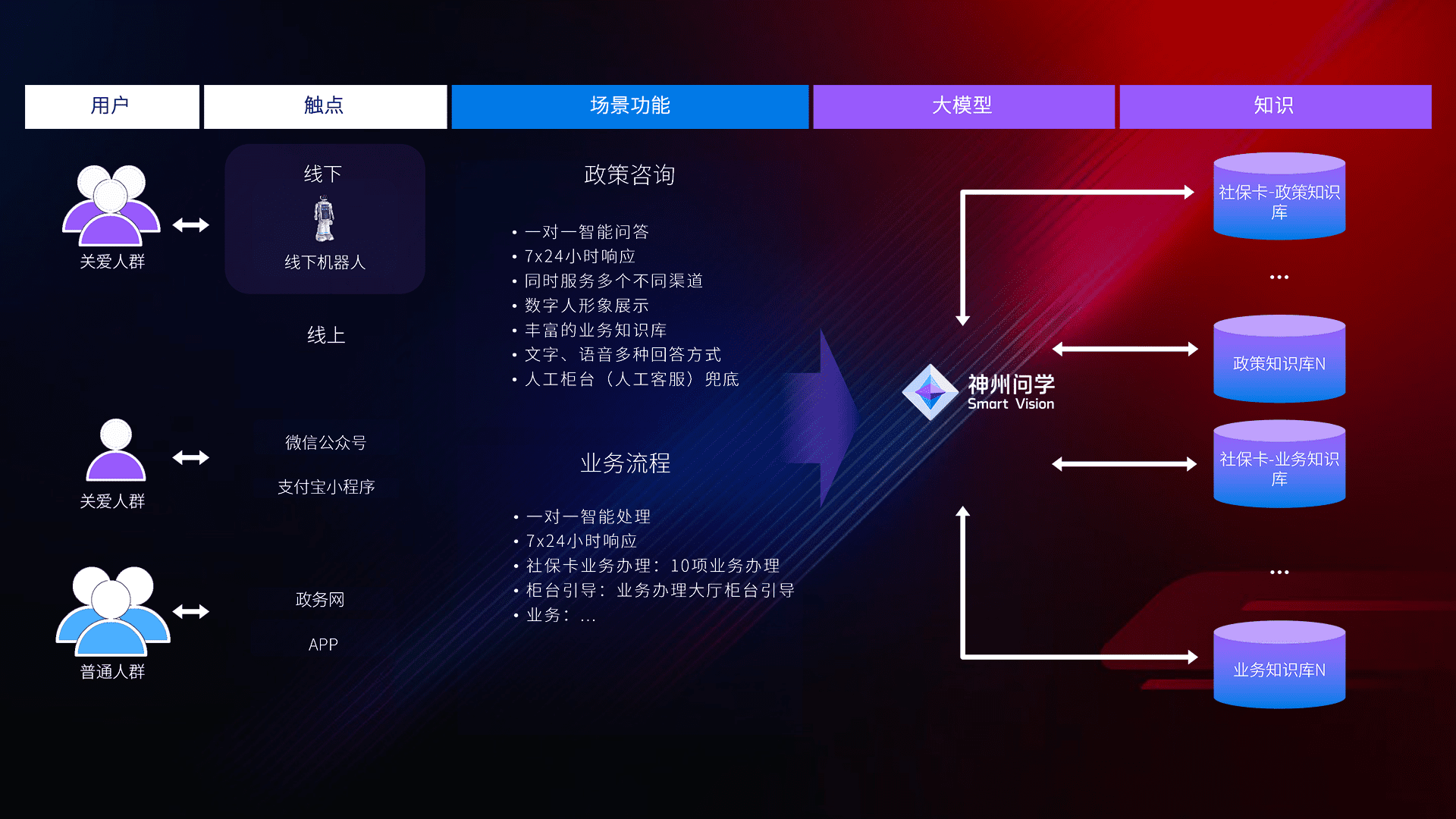 • 线上线下全覆盖:线上提供微信公众号、、支付宝小程序、、政务网、、app多种渠道,,与线下机器人形成完整服务体系。。。。